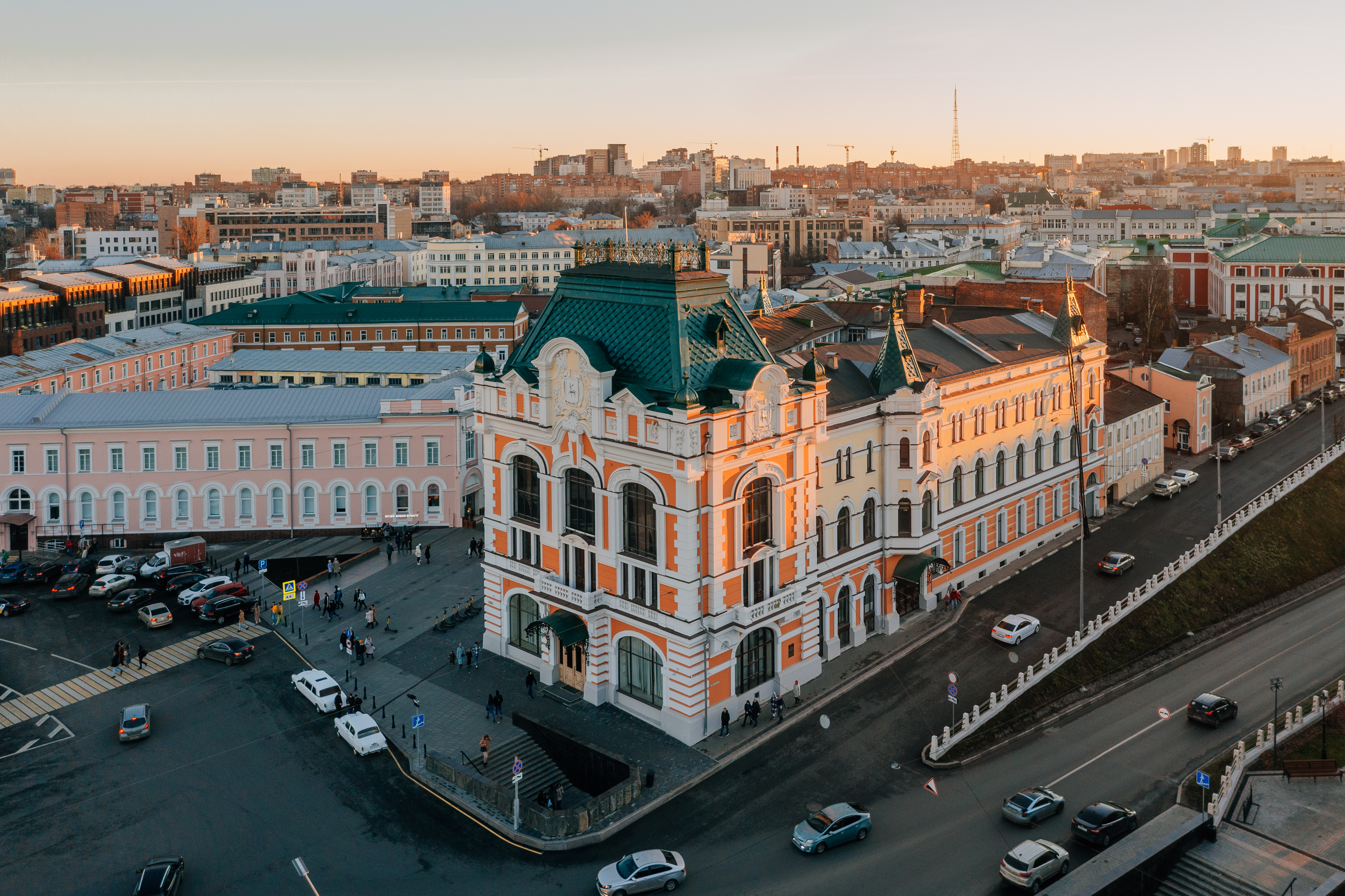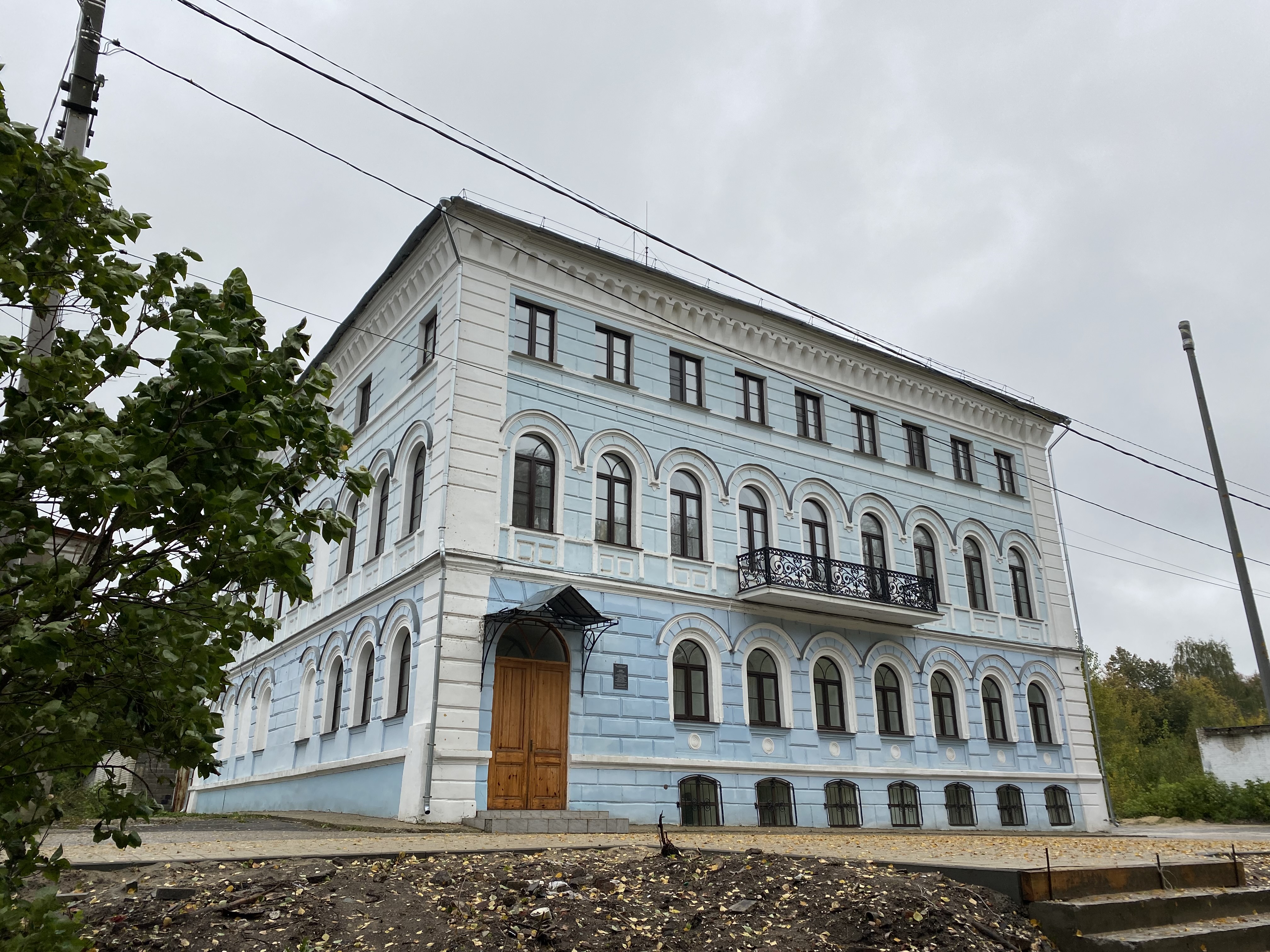 Главное здание Нижегородского музея-заповедника. Она была построена купцом первой гильдии С.М. Рукавишниковым в 1877 году на живописной Верхне-Волжской набережной. После Октябрьской революции в 1918 году при участии сыновей хозяина Ивана и Митрофана Рукавишниковых здесь открылся городской музей. Главный дом усадьбы – великолепный образец академической эклектики последней четверти XIX века.